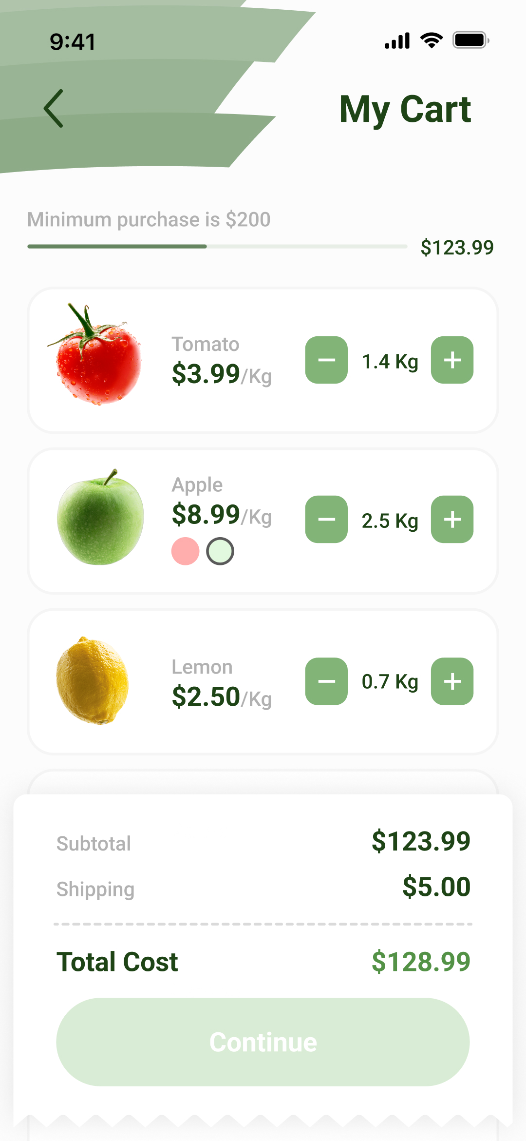 Thanks to the research stage, it was determined that for the shopping app to be successful, it should be visually quite simple but with the important elements always easily accessible. Both features such as scheduled deliveries and the checkout page focus on what is important to the user at each step of the process.